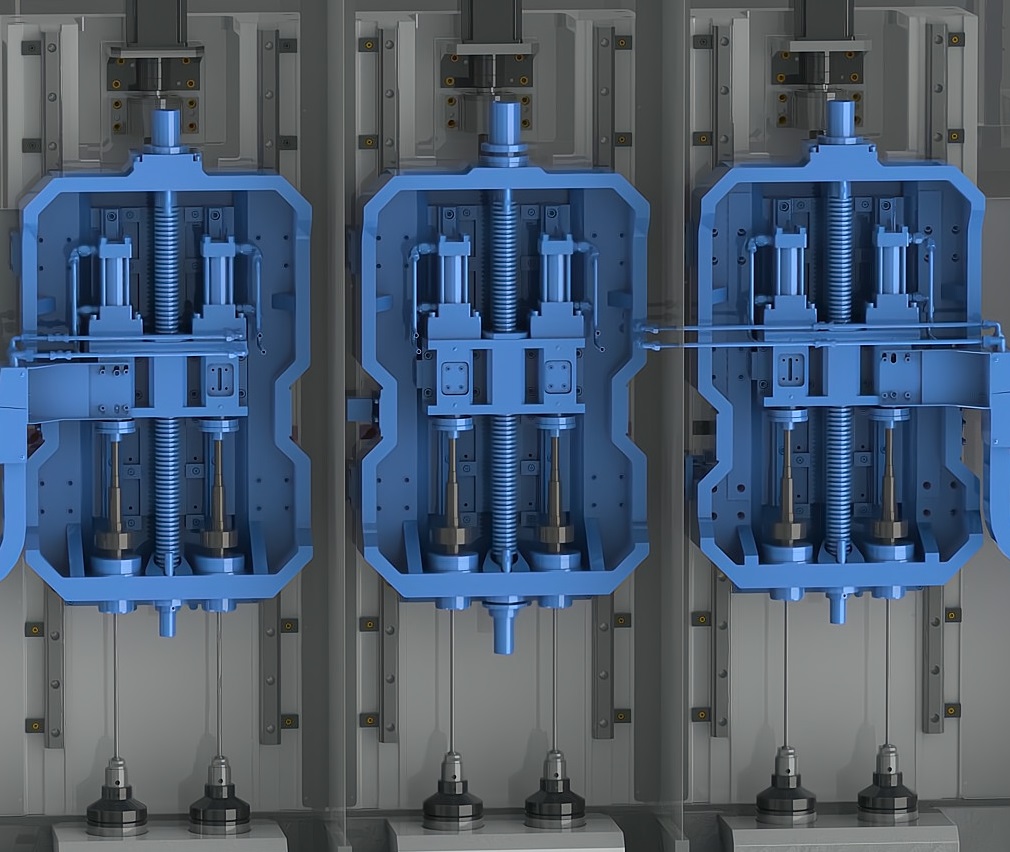 簡(jiǎn)要說(shuō)明:倒立式布局設(shè)計(jì)。槍鉆在下,工件在上,從下向上鉆削加工。排屑順暢,占地面積小。根據(jù)主軸軸數(shù)的不同,機(jī)床分為獨(dú)立的多個(gè)加工單元。各加工單元可單獨(dú)或同時(shí)運(yùn)動(dòng),互不干涉。