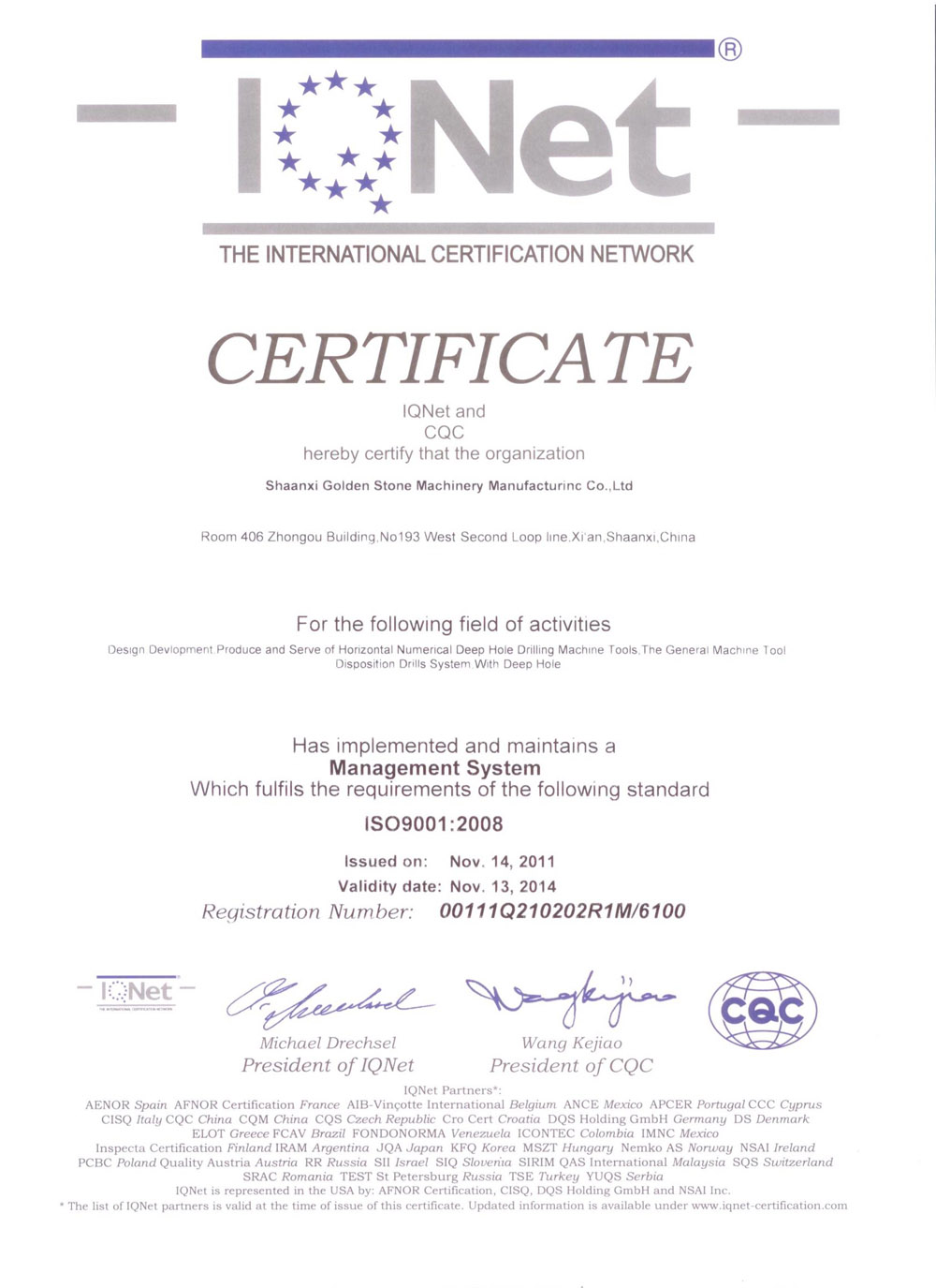 質量管理體系認證證書(英文版) 質量管理體系認證證書